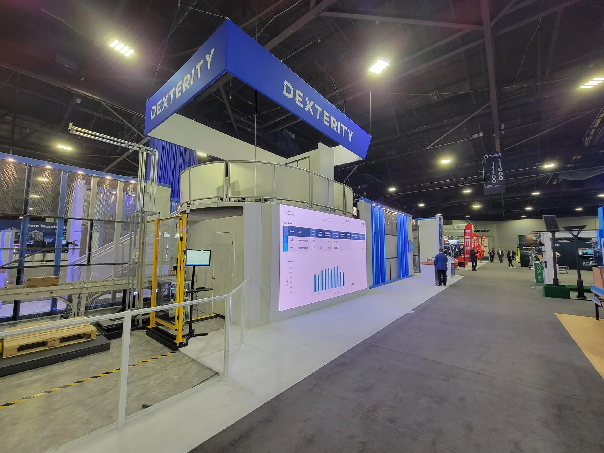 VDA rose to the challenge with an innovative double-decker booth design that adeptly balanced the need for engaging demos with functional meeting spaces. The ground floor of the booth was transformed into a high-energy showcase, where visitors could experience Dexterity's robotics in action through dynamic, interactive demonstrations. This vibrant space was designed to captivate and engage, drawing attendees into the world of advanced automation.